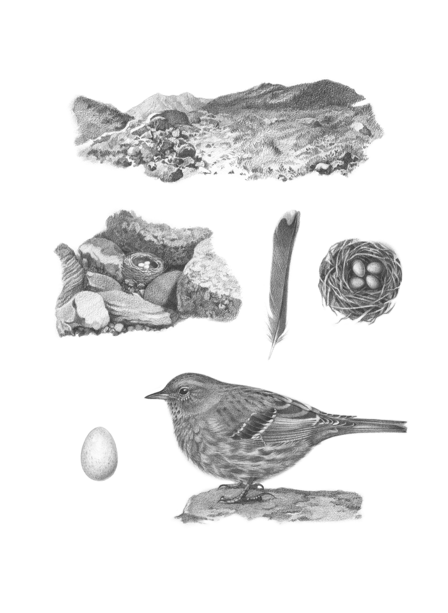 an Alpine Accentor singing that loves the alpine meadows and sunny rocky